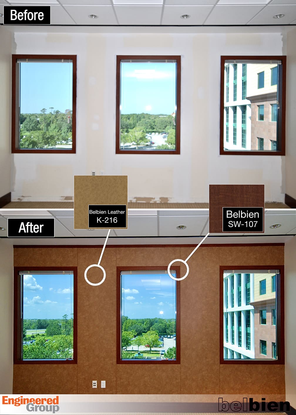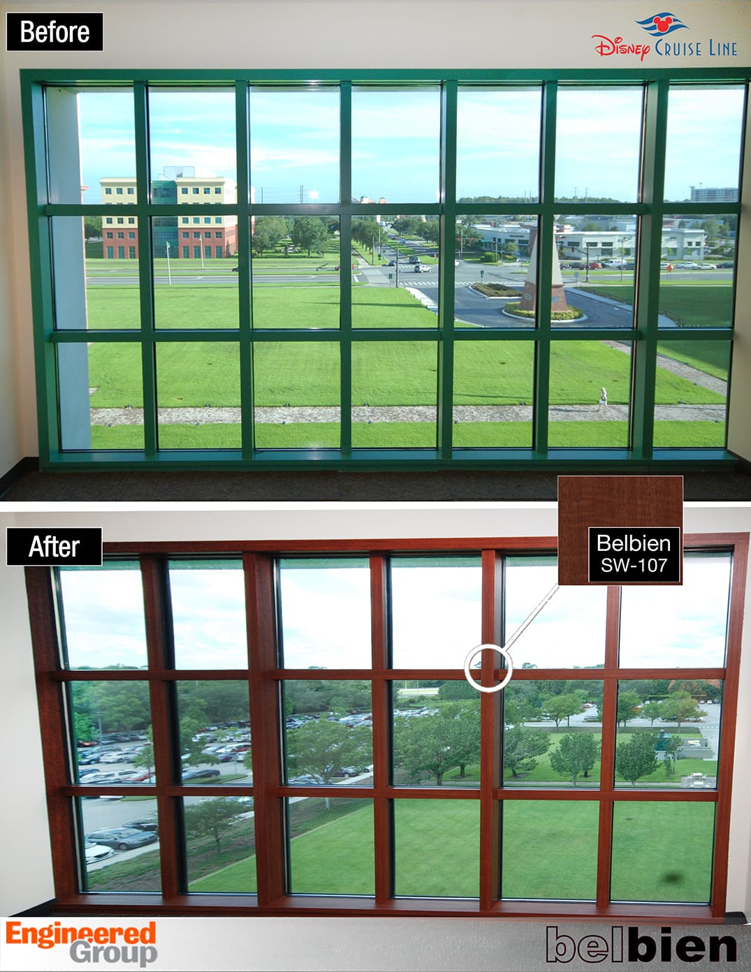 Using Architectural Finishes from Belbien, Leather K-216, and SW-107, the specialists at Engineered Group got to work! They gave the Disney Cruise Line Headquarters a stunning new look at a fraction of the time and cost of renovation.