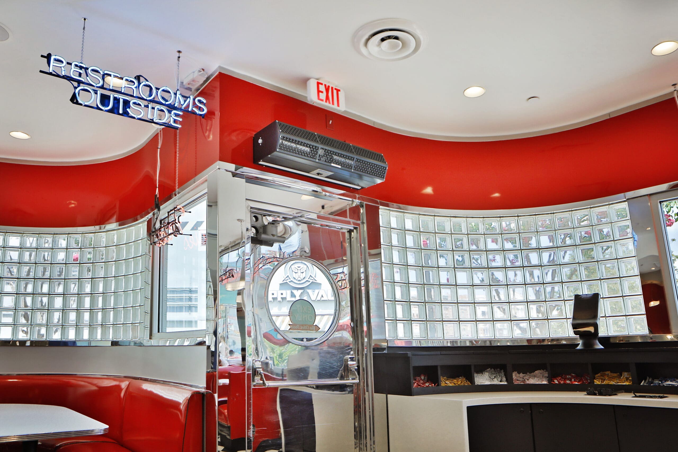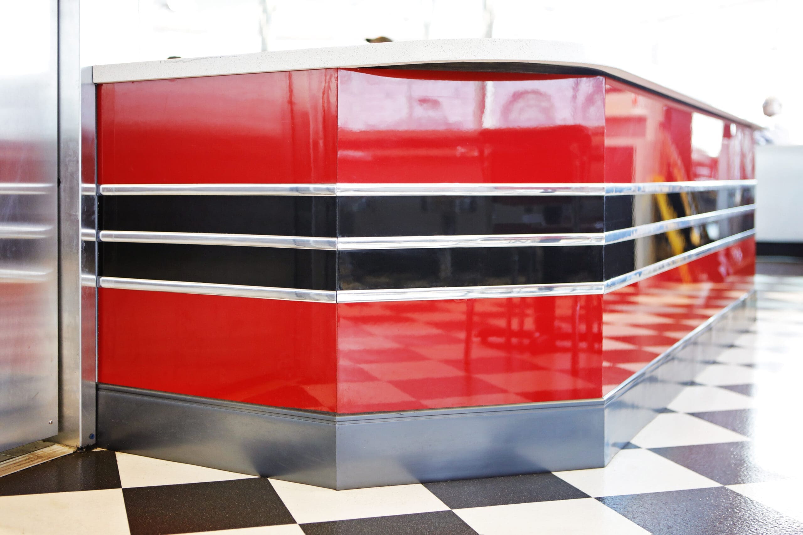 Engineered Group was tasked with installing architectural overlays on the walls and counters of Mel’s Drive-In in Orlando, Florida. Located in Universal Studios Florida, Mel’s Drive-In is a nostalgic quick service restaurant inspired by the film American Graffiti. This 1950s style diner features fully restored vintage cars outside and a menu of drive-in classics like burgers, fries, root beer floats, milkshakes and more.