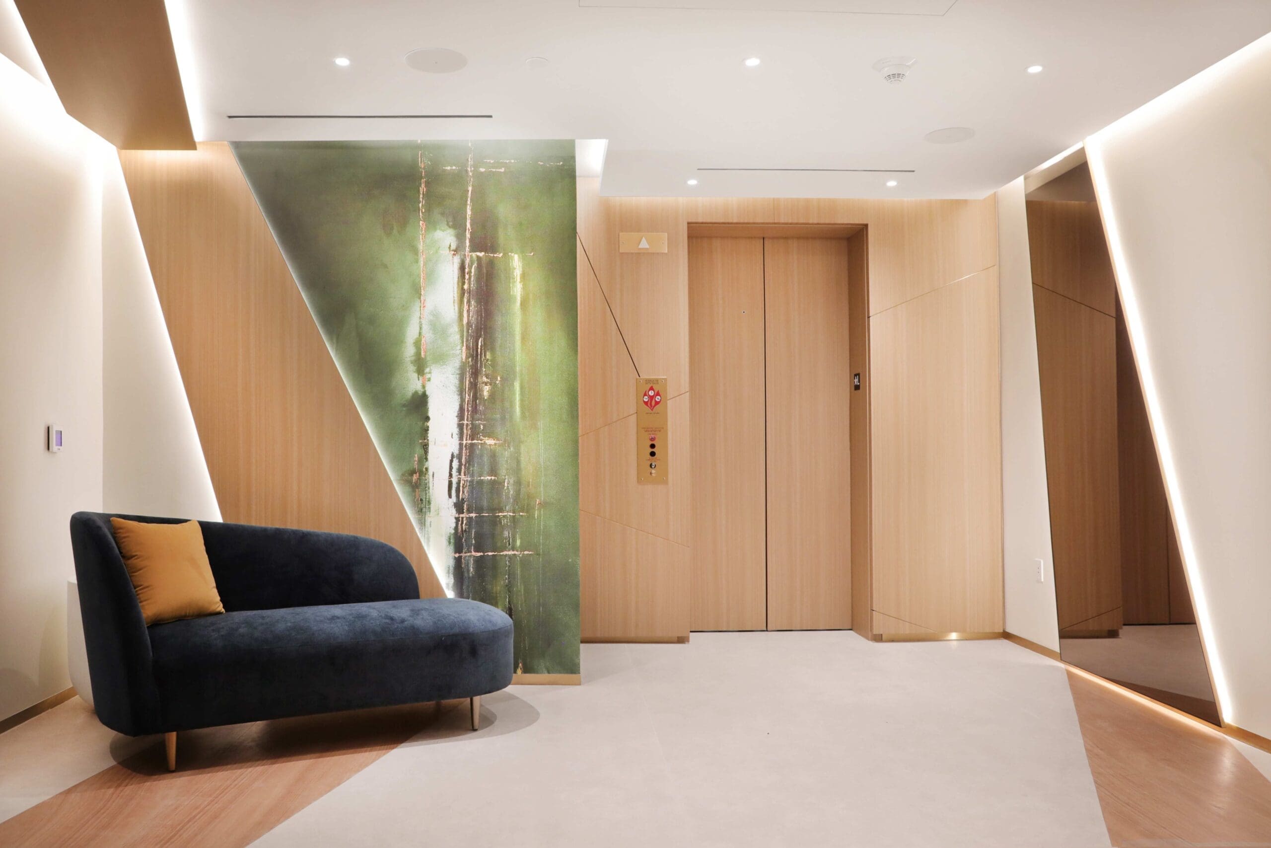 As a dealer and installer of architectural finishes and overlays, we knew that there would be a overlay in Reatec’s vast catalog that matched the look that Pier Sixty-Six was going for. We found the right pattern and colors and got to installing the architectural finishes on the walls, ceiling, and elevators of the condo complex. We matched the right patterns so the space looks great in different lighting and completed the project in weeks versus the months that a project like this can typically take.