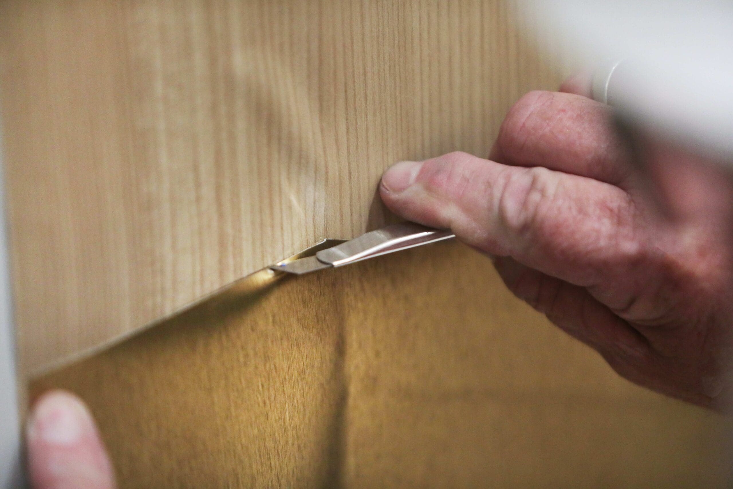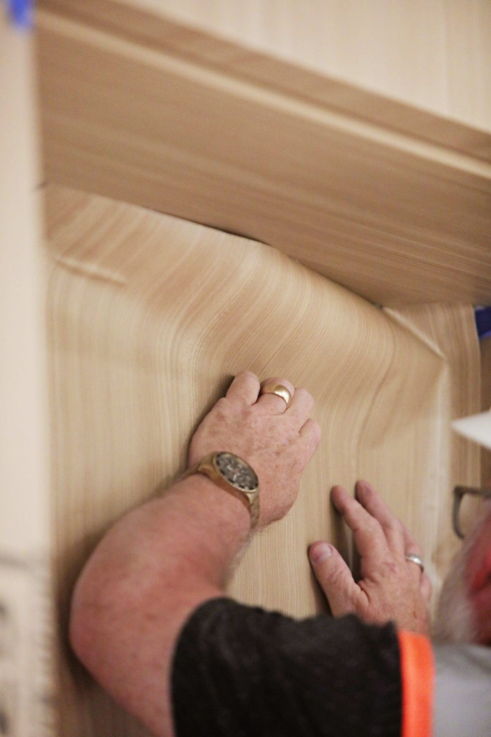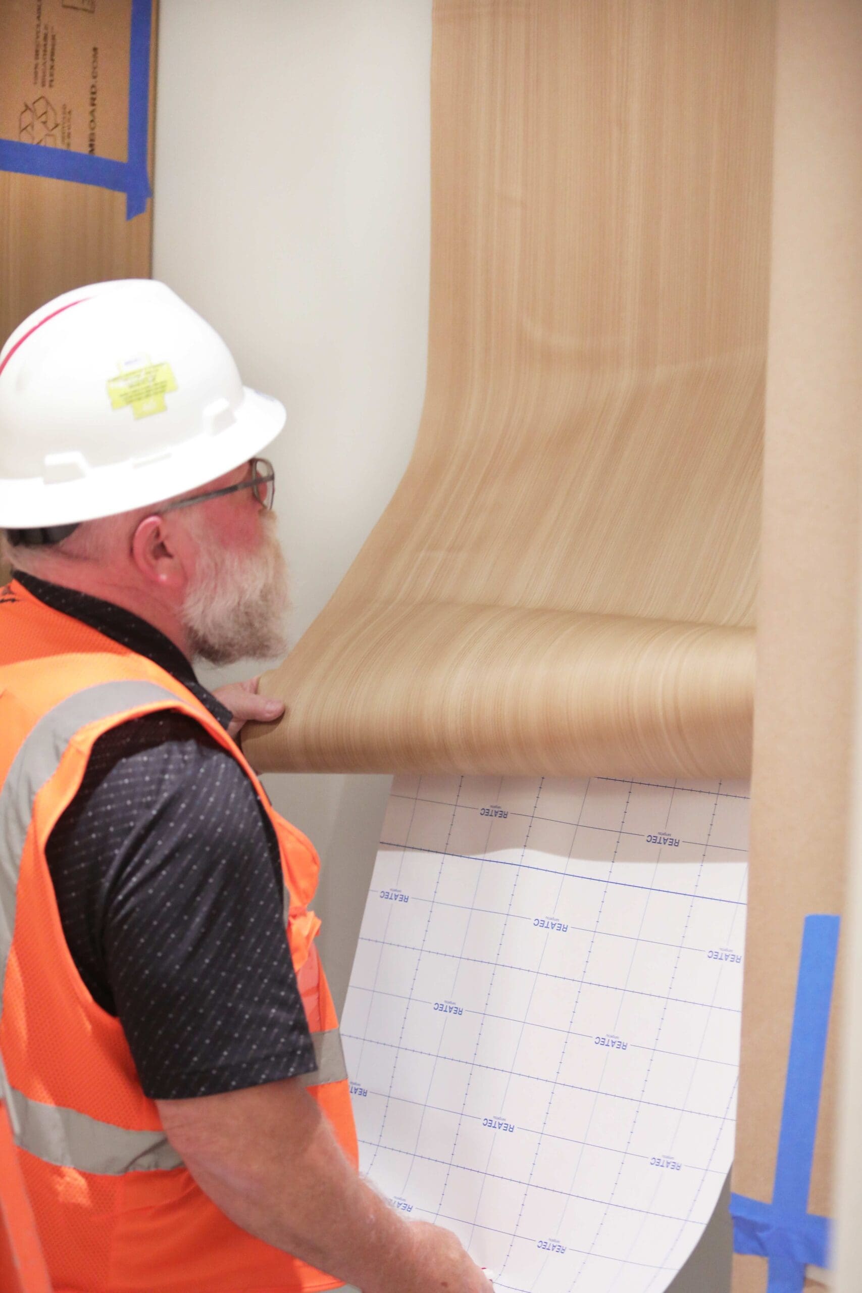 There are over 1000s of patterns and finishes to choose from in, including metal, wood, stone, and leather. For this project, the builder was looking for a modern, clean, high-end look to match the luxuriousness of the condo complex. We landed on using Reatec TC-5082 for the wood grain and RD-5534 for the metallic accents. Click the buttons below to samples of the overlays!