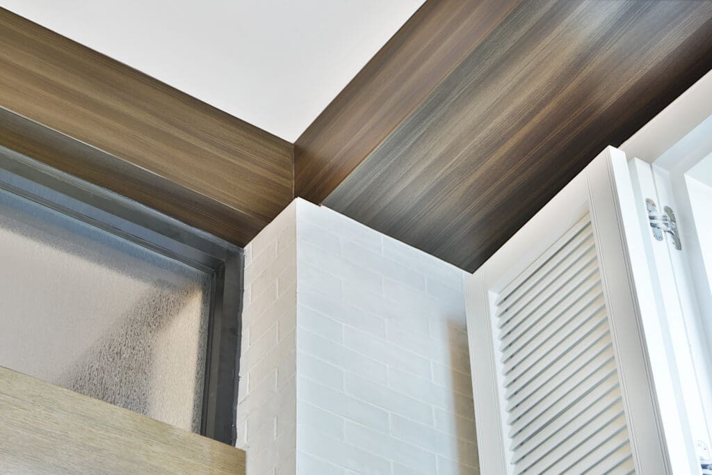 After discussing with the client the vision for their project, we landed on using Reatec architectural finishes to help create the space that they wanted. We used architectural overlay Reatec TC-4328 to cover the Sintra panels that we installed.
